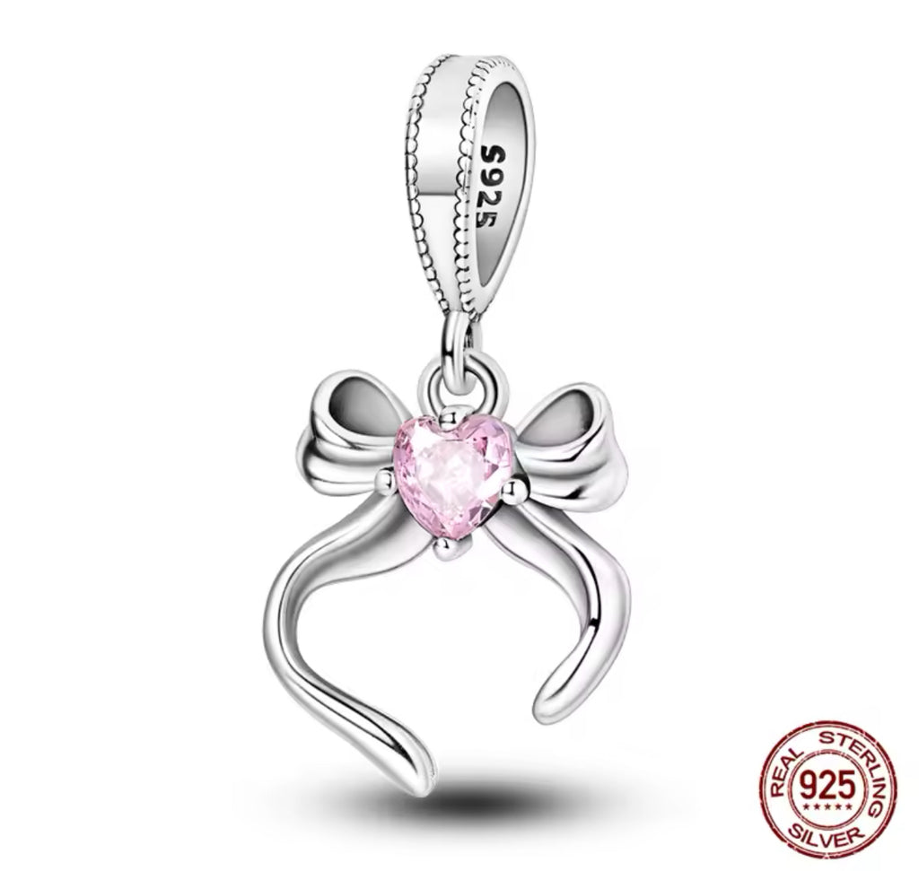Pink Bow Bracelet Charm Silver