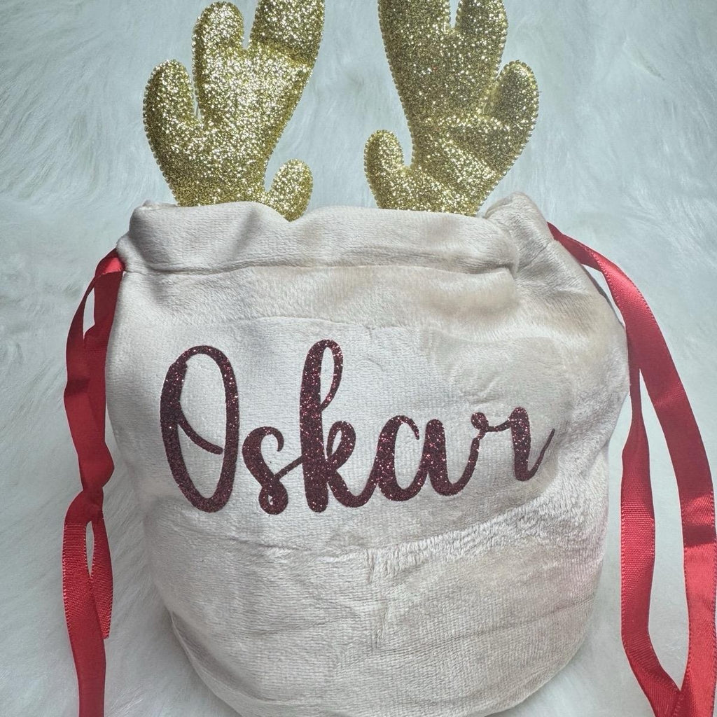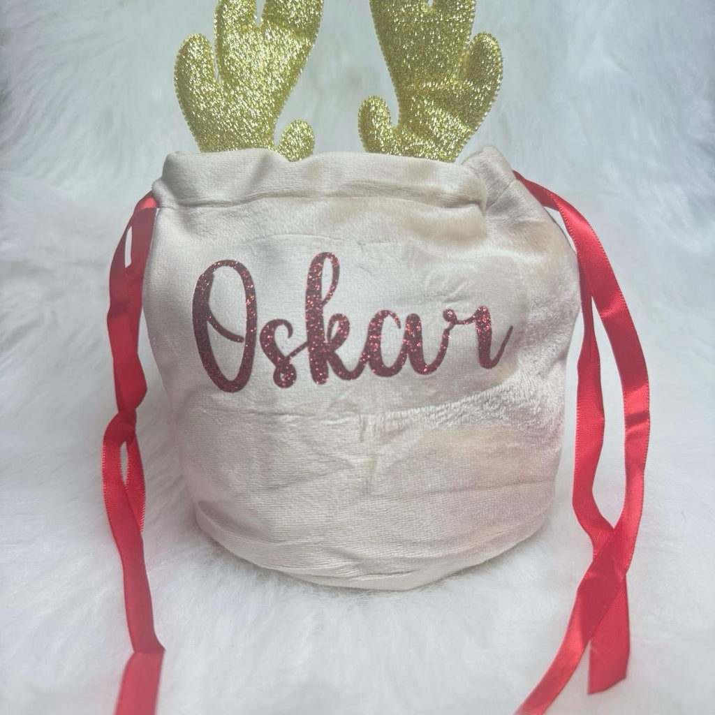 Personalised Velvet Reindeer Christmas Gift Bag