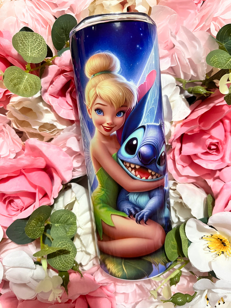 tinkerbell & stitch hugging 20oz stainless steel tumbler cup